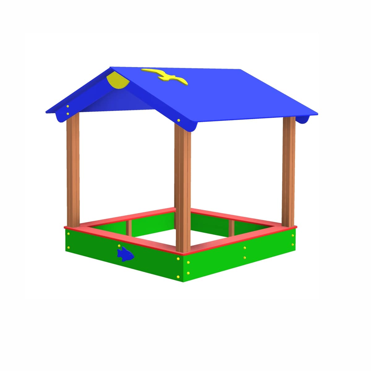 Основание песочницы изготовлено из листа металлического 1.5мм. каркас тр.кв.40х40, тр.кв.20х20. Верх песочницы (сиденье), шириной 150 мм, выполнен из фанеры толщиной 21 мм. Используемая фанера должна быть водостойкой, марки ФСФ, из лиственных пород деревьев. Деревянные детали тщательно отшлифованы, кромки закруглены, обработаны морилкой по дереву с целью защитить от негативных воздействий окружающей среды. Фанера окрашена водно-дисперсионной эмалью, предварительно обработана грунтовкой, стойкой к сложным погодным условиям, истиранию, действию ультрафиолета и специально предназначенными для применения на детских площадках, крепеж оцинкован. Металлические элементы окрашены яркими порошковыми красками с предварительной антикоррозийной обработкой. Выступающие концы болтовых соединений должны закрываться пластиковыми заглушками.