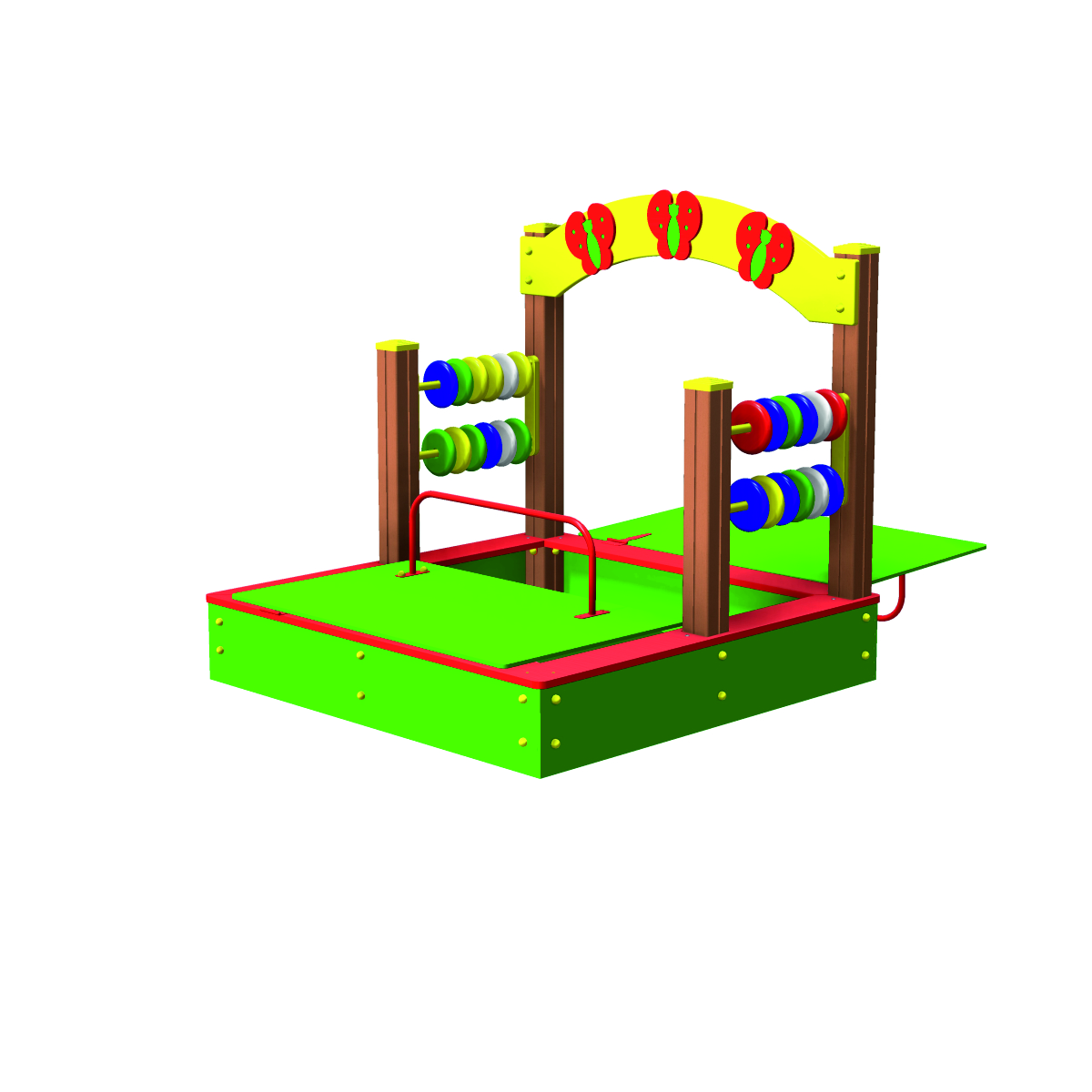 Металлические элементы каркаса песочницы окрашены яркими порошковыми красками с предварительной антикоррозийной обработкой.