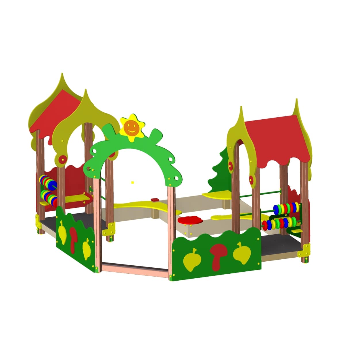 Деревянные детали должны быть тщательно отшлифованы, кромки закруглены и окрашены яркой водно-дисперсионной акриловой эмалью, стойкой стойкими к сложным погодным условиям, истиранию, действию ультрафиолета и специально предназначенными для применения на детских площадках, крепеж оцинкован.