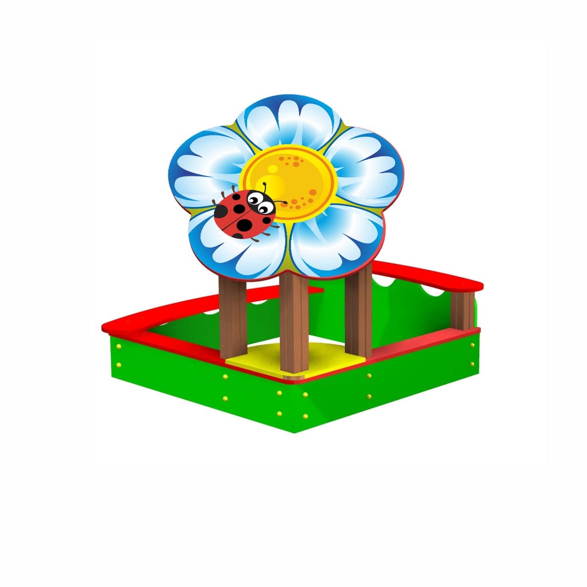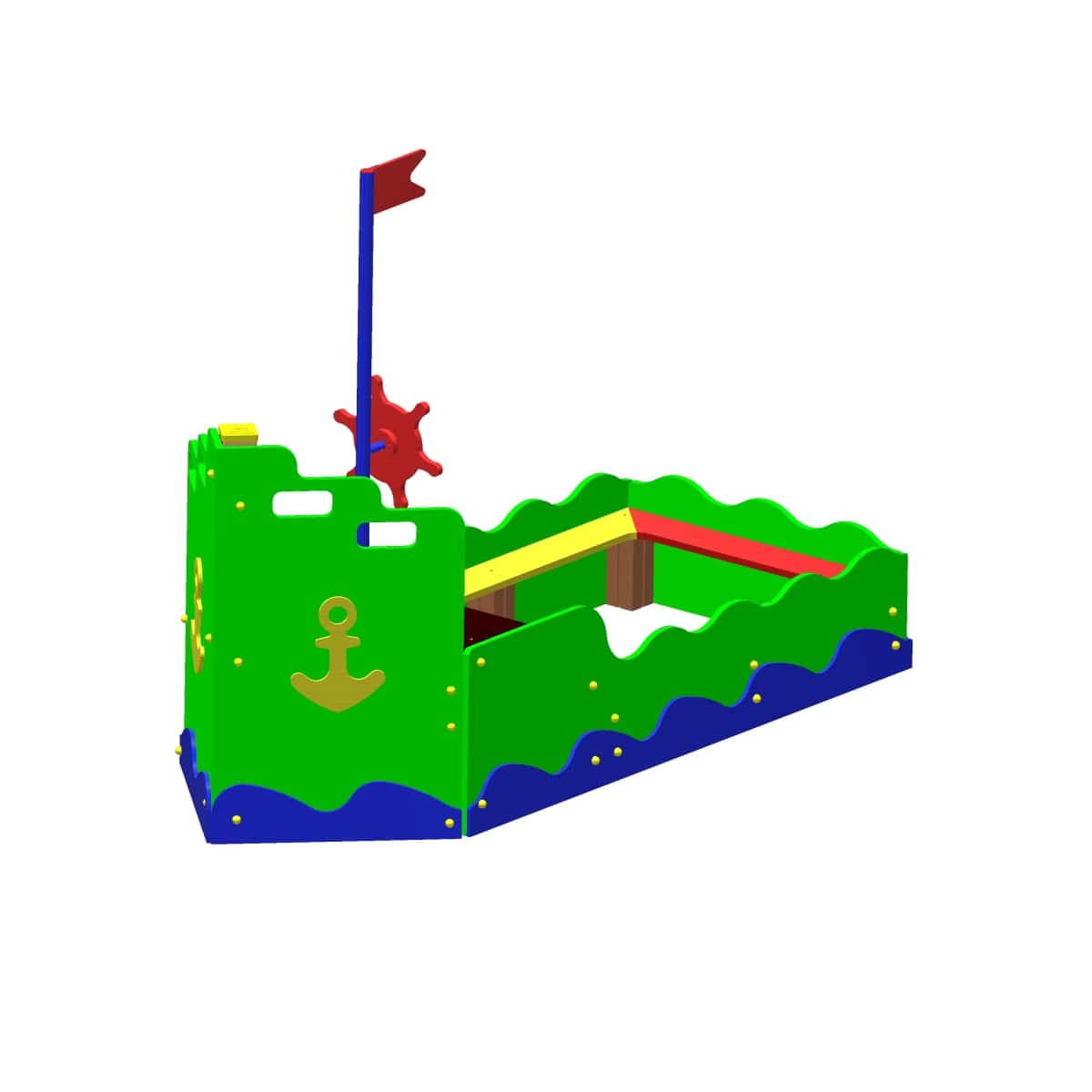 Основание песочницы изготовлено из клееного бруса сечением 100*100 мм, верх песочницы (сиденье), шириной 150 мм, выполнено из фанеры толщиной 21 мм. Борта песочницы изготовлены из составных частей, высотой 300 мм и 450 мм, которые выполнены из фанеры толщиной 12 мм. Закладные изготовлены из профильной металлической трубы сечением не менее 25 мм. Используемая фанера должна быть водостойкой, марки ФСФ, из лиственных пород. Деревянные детали должны быть тщательно отшлифованы, кромки закруглены, должны быть обработаны морилкой по дереву с целью защитить от негативных воздействий окружающей среды. Фанера окрашена окрашены яркой водно-дисперсионной акриловой эмалью, предварительно обработана грунтовкой, стойкой к сложным погодным условиям, истиранию, действию ультрафиолета и специально предназначенными для применения на детских площадках, крепеж оцинкован. Металлические элементы окрашены яркими порошковыми красками с предварительной антикоррозийной обработкой. Выступающие концы болтовых соединений должны закрываться пластиковыми заглушками.