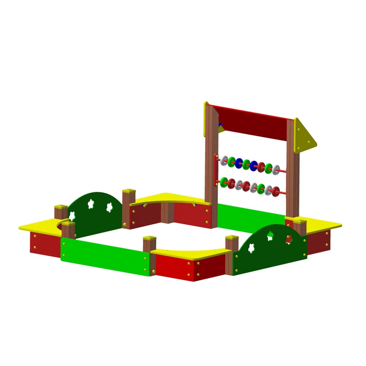 На двух сторонах песочницы между двух вертикальных стойках должны быть закреплены счеты, на горизонтальной металлической трубе, диаметром не менее 20,6 мм.