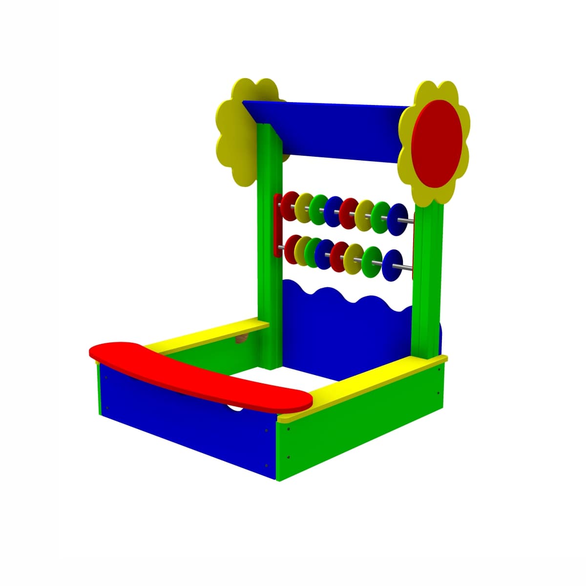 Песочница высота – 271 мм. Основание песочницы изготовлено из клееного бруса сечением не менее 100*100 мм, верх песочницы (сиденье), имеет ширину не менее 150 мм, изготовлено из березовой влагостойкой фанеры толщиной не менее 21 мм.