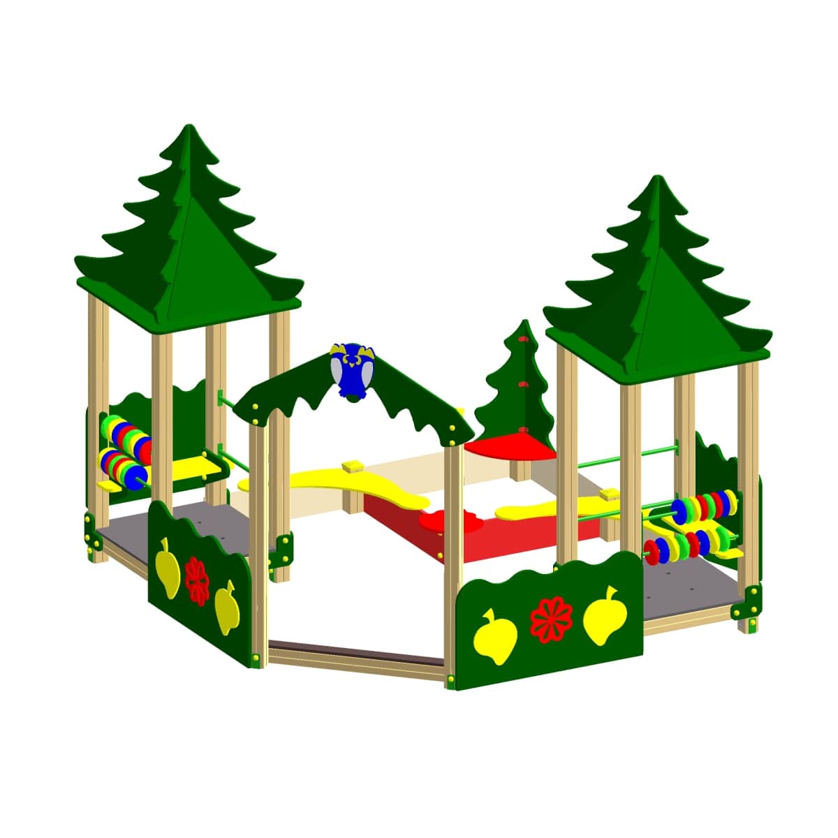 Фанера окрашена окрашены яркой водно-дисперсионной акриловой эмалью, предварительно обработана грунтовкой, стойкой к сложным погодным условиям, истиранию, действию ультрафиолета и специально предназначенными для применения на детских площадках, крепеж оцинкован.